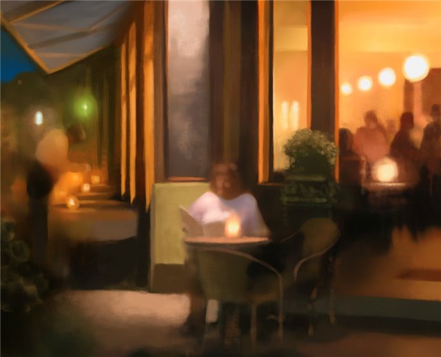 Я постоянно делаю маленькие наброски (thumbnail scetches). Это помогает мне уточнить мое видение (представление ) и решить первые проблемы технического свойства, как, например, контраст и композиция.